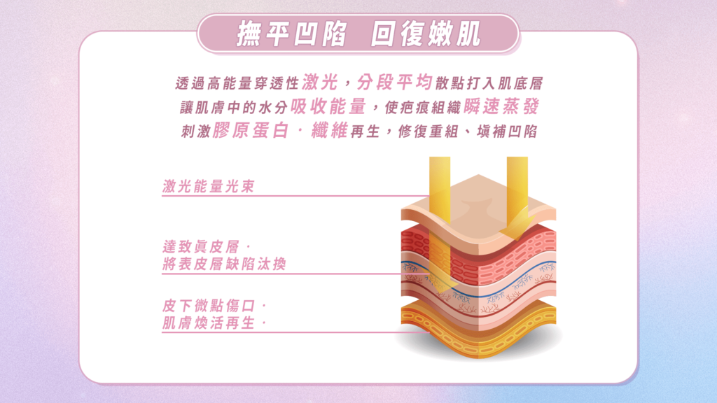 膠原再生療程是公認有效的凹凸洞療程,已經讓很多受同樣問題困擾的人重獲新生。膠原再生療程能夠促進有效的膠原凋,對於各種凹凸洞種類都能夠有效治療。