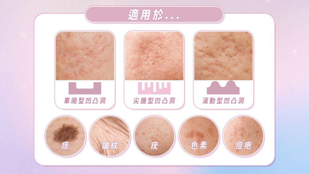 與傳統的治療手術相比,膠原再生美容療程是一種非侵入性的治療方式。凹凸洞患者無需接受臃腫手術切割的凹凸洞療程,不會留下明顯的疤痕,也無需長時間的康復期。