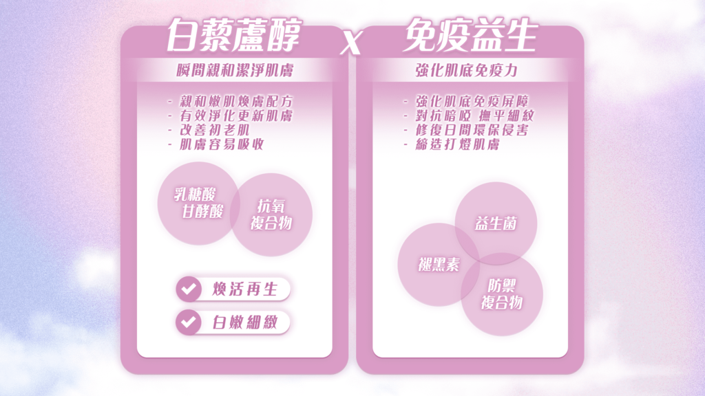白藜蘆醇 | 益生菌 | 淨化肌膚 | 增強肌膚免疫 | 滋潤嫩膚