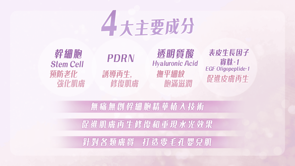 經過 sMTS嬰兒水晶針療程的黃金五步曲,客人就能實現優質的皮膚護理和修復,抵抗皮膚衰老,讓肌膚重新獲得年輕、光滑和健康的質感。